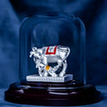 Invite prosperity and serenity into your space with this beautifully handcrafted cow murti. Made in pure 999 silver this idol shines with intricate detailing and vibrant enamel accents. Encased in a sleek glass dome on a polished base it blends tradition with elegance making it perfect for your home altar workspace or as a meaningful festive gift.